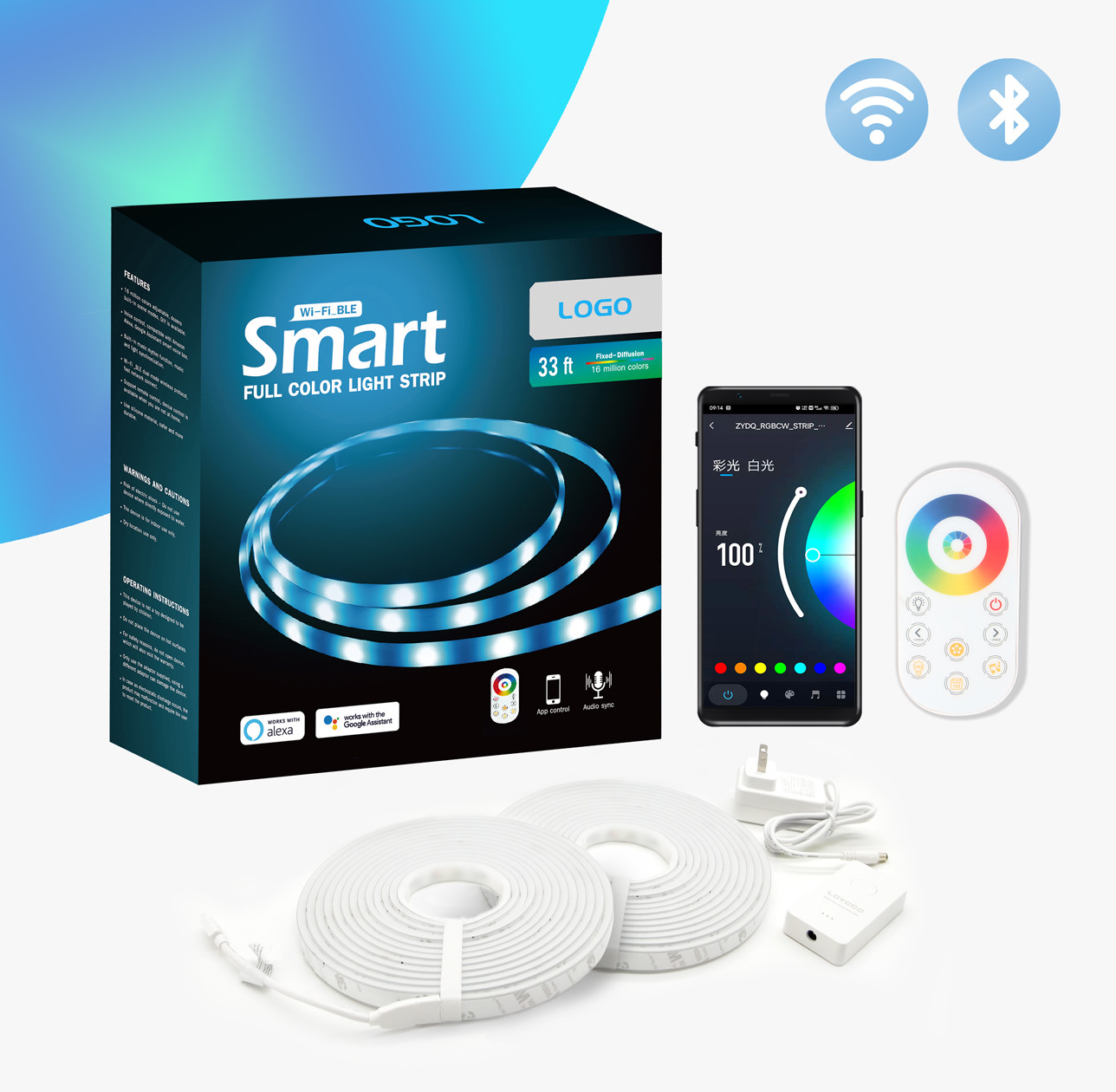 16 millones de colores adjustive, Wi-Fi y protocolo inalámbrico dual de BLE, conexión de red rápida